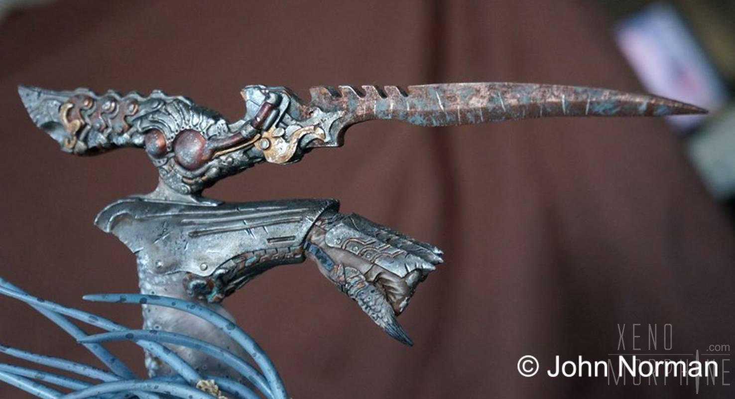 For me a creative process is all about getting into a good dialogue with my client from start to finish. I continuously keep working with them by showing them steps of progression, demanding some thought-given feedback or by suggesting new color applications to contrast or highlight certain details. I set high standards for myself, so the steps of progression are regularly alternated by just looking at the kit precisely from different angles, focusing on all it´s sculpted details if they are getting the treatment they are meant for. These moments of reflecting the own work surely can take some time, but they are an important part of the process. Sometimes a model kit even encourages me to take it up some levels to make it more unique or just to improve it. So - a positive provided from my client - I often costumize a kit by adding some details here and there on the sculpt, it might happen that I even destroy some parts of the original sculpt, e.g. to give it a more battle damaged look, or - like I did with NARIN´s Aboriginal Predator - designing a complete new base to create a more fitting overall picture. Furthermore, music is a constant companion while I’m working on a kit. It helps me to keep the flow of painting as some steps can get quite repetitive, e.g. painting nearly 200 dreadlocks recently. Not to forget, a good working environment is essential for a fluent creative process. I set up a full workshop in my garage, so I can do nearly all of the working steps from assembling to painting in one place. I consider myself lucly that I do not depend on a certain daytime, some people are only nightworkers, I can work any time. With a little offspring around now, this really helps to get back on the bench whenever there is a slot for it.